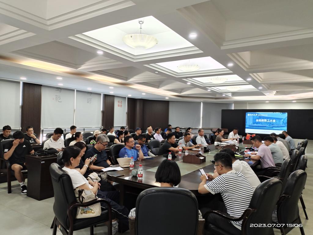 2023年7月7日下午,我院在北校区美术馆二楼227会议室召开期末教职大会暨教职工理论学习会。会议由公司党委书记杨伟青主持。