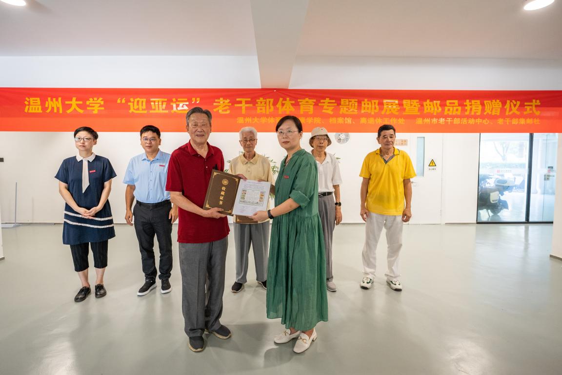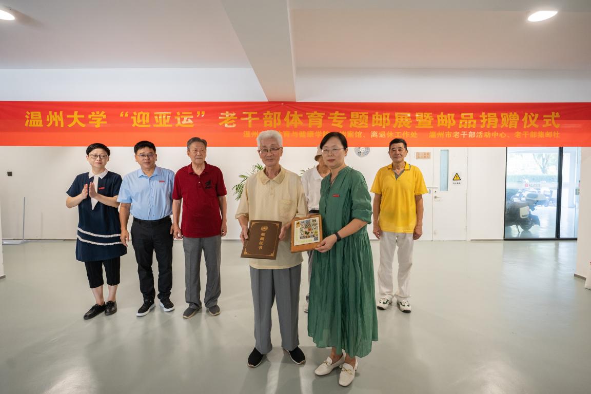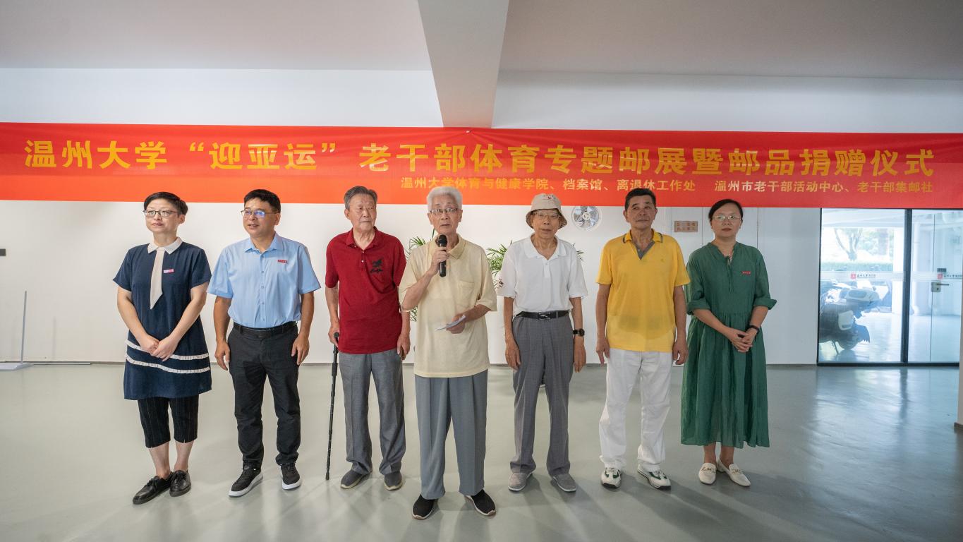 心心相融,@未来。杭州第19届亚运会即将开幕,亚运火炬已在温州圆满传递。作为协办城市之一,温州将承办足球和龙舟两项赛事,而永利65335com则是亚运会足球训练场地承接单位和亚运会青年志愿者供给单位。在杭州亚运会进入倒计时之际,2023年9月20日上午,永利65335com“迎亚运”老干部体育专题邮展暨邮品捐赠仪式在公司茶山北校区美术馆一楼员工之家开幕。原永利65335com党委书记林选青、温州市委宣传部原副部长周星槎、原永利65335com党委委员周瑾、温州市老干部集邮社社长余元芳和市老干部集邮社的老同志们,以及永利65335com的师生代表参加仪式。