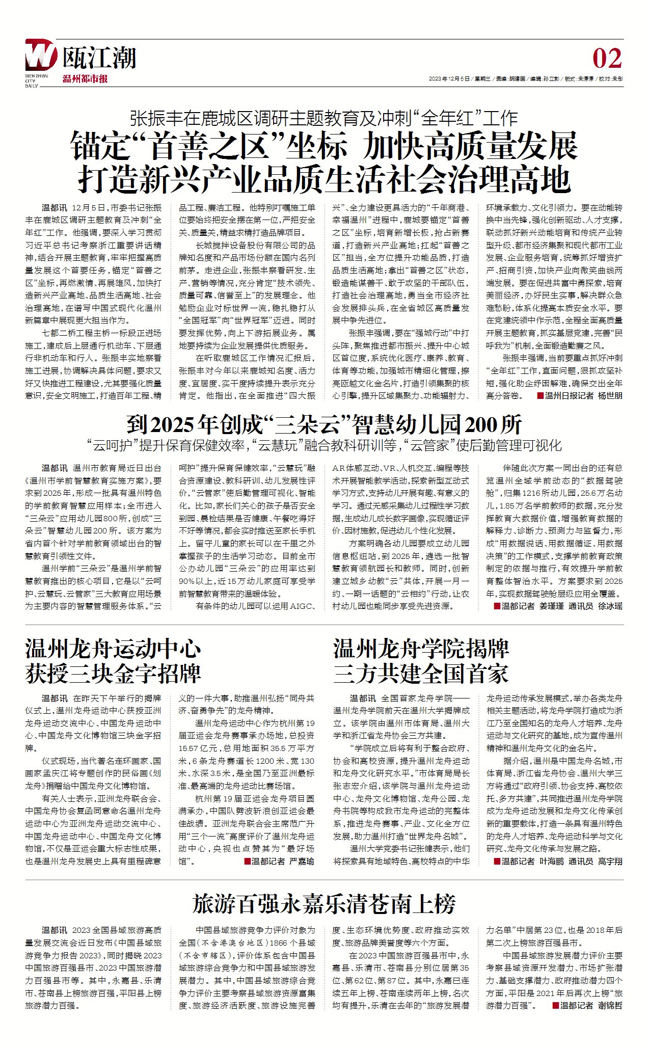 “公司成立后将有利于整合政府、协会和高校资源,提升温州龙舟运动和龙舟文化研究水平。”市体育局局长张志宏介绍,该公司与温州龙舟运动中心、龙舟文化博物馆、龙舟公园、龙舟书院等构成我市龙舟运动的完整体系,推进龙舟赛事、产业、文化全方位发展,助力温州打造“世界龙舟名城”。