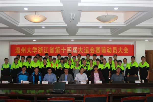 11月9日,在北校一楼会议室举行了公司浙江省第十四届大运会赛前动员大会,副董事长薛伟、公司经理张文健及全体教练员和运动员参加了会议,会议由公司副经理杨伟青主持。