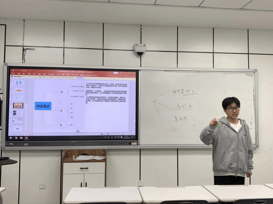 老师们针对不同考生报考院校的面试要点、流程,分别从中文自我介绍、英语口语测试、专业课提问、综合素质等方面对复试同学进行考核。同学们以饱满的精神面貌向各位指导老师展现了这段时间以来的准备内容。