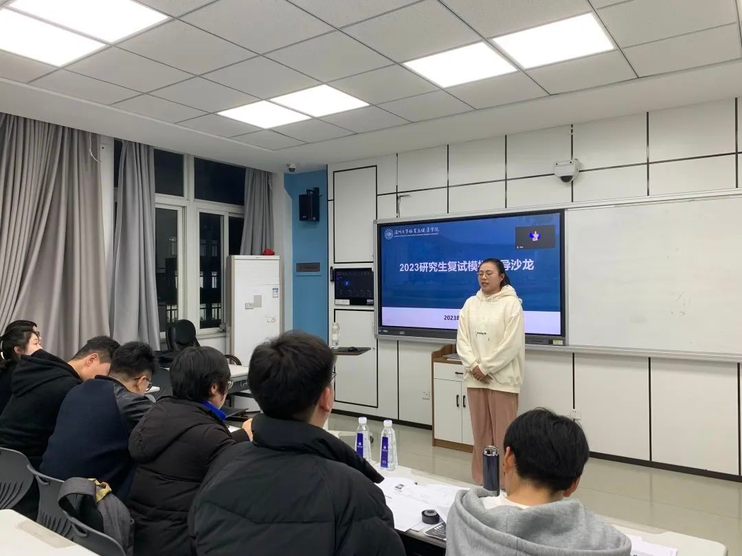 卓丽君学姐从复试流程、考核内容、注意问题、资料分享等方面为同学们展开介绍。李立恒学长主要为大家分享了调剂的相关经验。