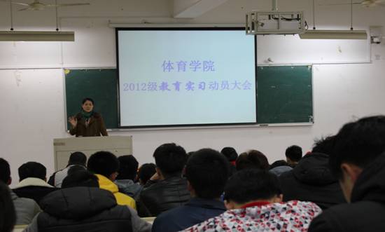 张秀华副经理动员讲话:张秀华副经理首先详细阐述了教育实习的具体安排、作用、具体要求,强调了实习的重要性,对实习过程中的注意事项进行了具体说明。重点指出在实习过程中要发挥体育专业的特长,协助实习公司开展各项活动,要求全体员工在实习过程中努力掌握教学过程的特点、规律,在教育实践中不断提高自身的教学素养和教学能力。希望全体实习生要以正确、积极的态度看待实习,树立信心,完成从员工到教师的角色转变,以踏实的工作作风和严肃认真的态度完成此次教育实习任务。会上张秀华副经理对实习生的生活、安全方面也提出了具体的要求,如实习生在实习期间要注意自己的言行举止、穿着礼仪以及上课的时间观念等。最后,张秀华副经理希望全体实习生做好实习前准备,并预祝公司实习生实习期间取得优异成绩,祝本届实习工作取得圆满成功。
