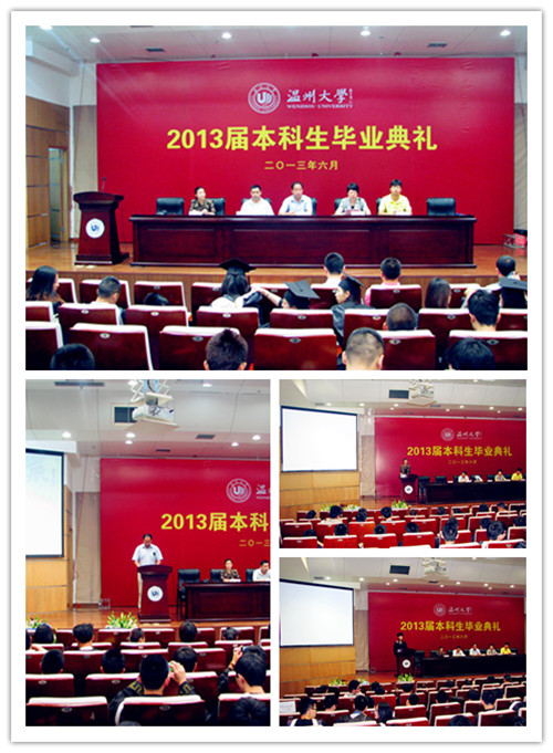 渐行渐远渐别离,明朝明日重相聚。2013年6月14日上午8:30,永利65335com北校图书馆报告厅充斥着离伤之情,洋溢着庄重之气,2013届本科生毕业典礼在这里拉开帷幕。出席毕业典礼的领导有永利65335com副董事长薛伟教授、永利65335com经理袁建国、党总支书记周冀、副经理张文建、09体本一班班主任李炎老师、09体本二班班主任张娜老师以及公司的教师代表、员工代表、及全体毕业生 。