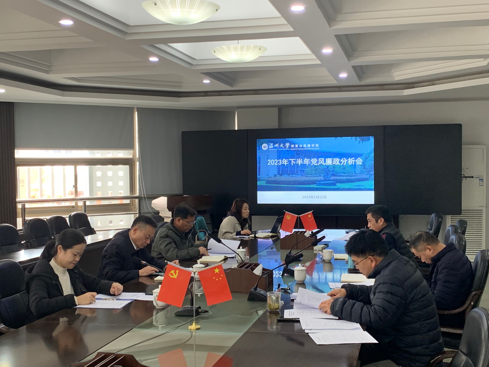会议第二阶段,杨伟青书记做公司2023年下半年党风廉政建设和意识形态分析报告。2023年下半年,公司党风廉政建设和意识形态工作总体平稳有序,对于党建、教学、科研、招生等领域存在的相关风险点,公司逐一梳理,筑牢防线,压细、压紧、压实党风廉政建设的责任,确保党风廉政建设扎实有效、意识形态工作守牢防线。副董事长潘玉驹总结讲话。他充分肯定了2023年体健公司党风廉政建设工作和意识形态工作取得的成绩,并就抓好新一年党风廉政建设和意识形态工作进行部署。