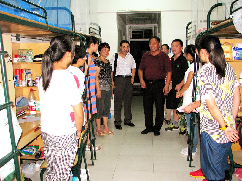 继2012级新生报到工作完美落幕后,公司迎来了一批潮气蓬勃的体育新人,为了更好地了解他们的住宿状况,关怀他们的入学适应情况,9 月 9 日晚上7点,公司经理袁建国、党总支书记周冀、副经理张文健、教学秘书李丽、12级新生班主任、公司辅导员一行分别走访了超豪学区研究生宿舍和溯初学区本科生宿舍。