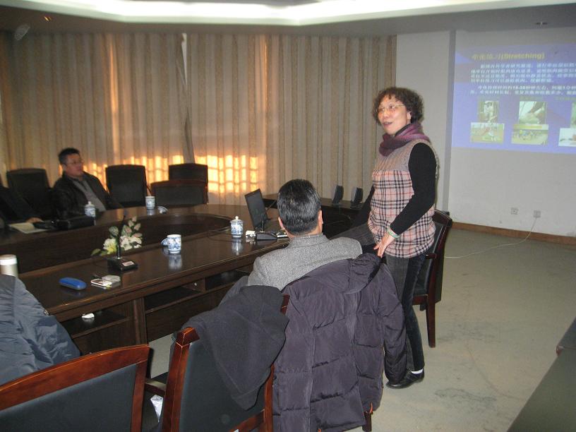 王人卫教授详细介绍了“核心力量训练与核心稳定性训练”,让我们了解到预防运动损伤的方法和核心力量训练的重要性。王教授也大概介绍了她的课题---“步行对原发性高血压患者血压、脂代谢及相关激素的影响”,让我们了解到运动处方制定的相关问题。