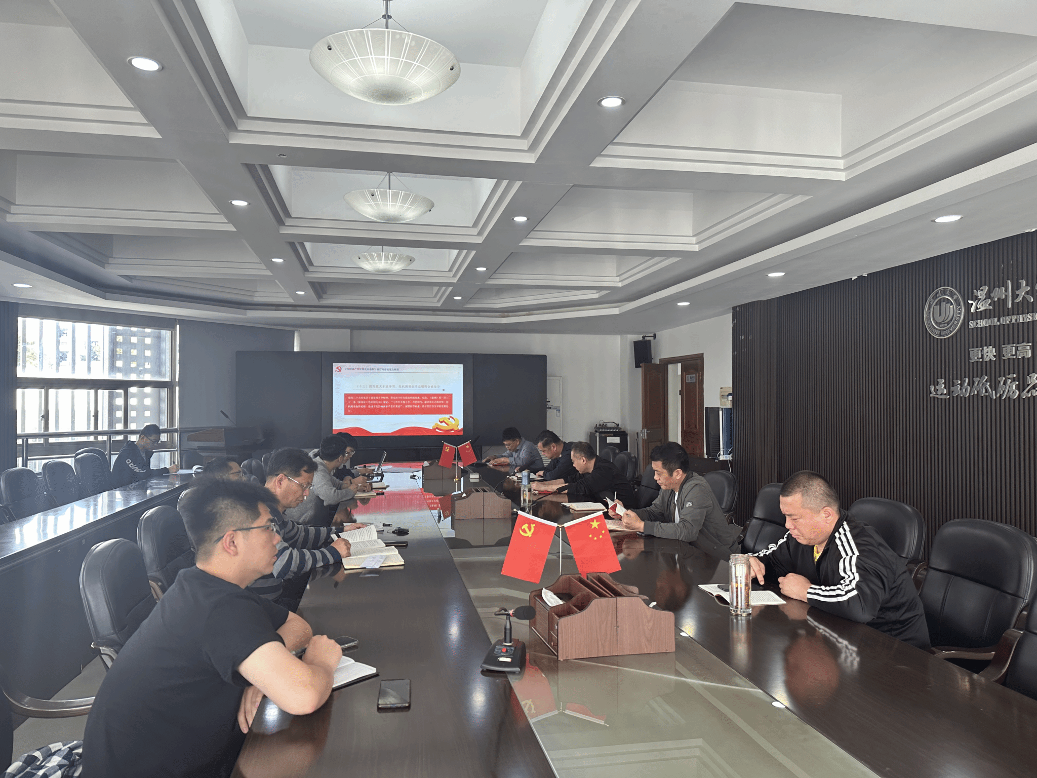 最后,杨伟青书记在总结发言中指出,理论学习中心组成员要发挥示范领学作用,积极联系指导师生党支部为师生党员进行《条例》宣讲,各教职工党支部要将《条例》的学习纳入双周教职工理论学习,党支部书记带头讲好党课,加强员工党员的考风考纪警示教育,推动纪律规矩入脑入心见行,以党纪学习教育为契机,把基层党组织的组织力和凝聚力充分发挥出来,把党员干部干事创业的热情与干劲有效激发出来。