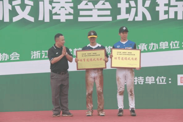 裁判长石峰、浙江省棒垒球协会副秘书长苏岑分别颁发体育道德风尚奖、优秀教练员、优秀投手奖、优秀裁判员、最佳击球员奖、本垒打奖。