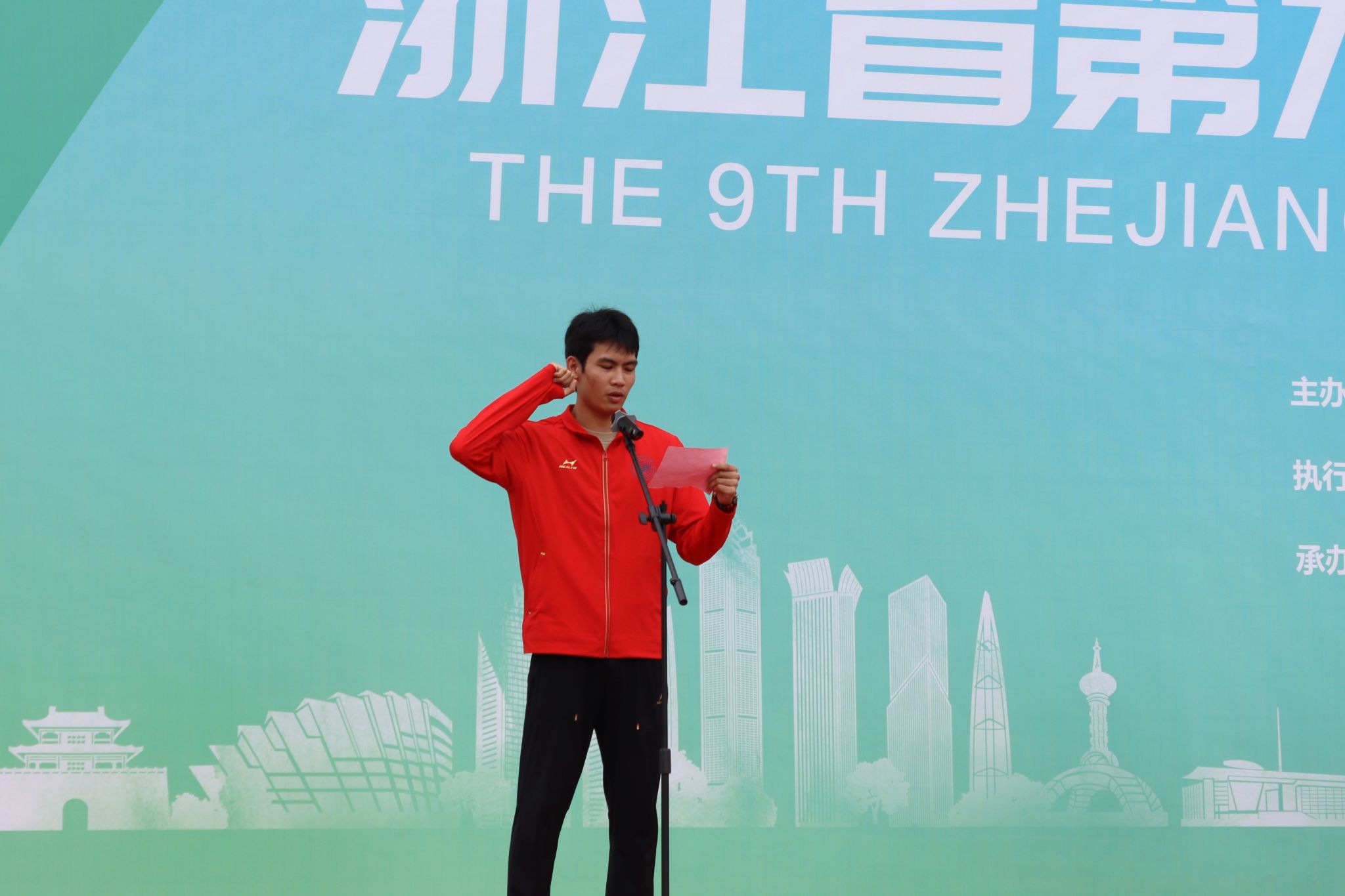 公司运动员代表林泽坚、裁判员代表翁士洋庄严宣誓