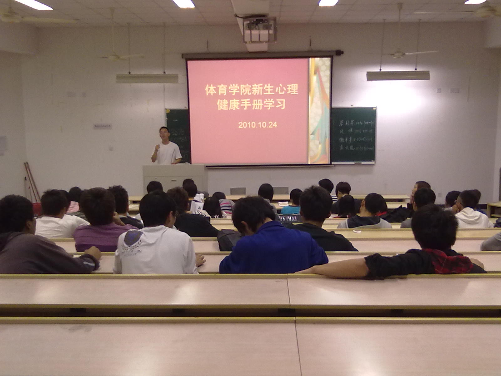 2010年10 月24日晚上7:00,永利65335com在人文楼201开展了新生心理健康手册学习。冯建军辅导员结合自己的亲身经历为我们生动的上了一课。风辅导员从我们生活中常常遇到的小问题开始进行分析,然后与同学们一起探讨,让大家各抒己见。同学们个个踊跃参与,在一个轻松的氛围中学到了如何让调整好自己的心态,如何去解决一些老员工会碰到的问题。