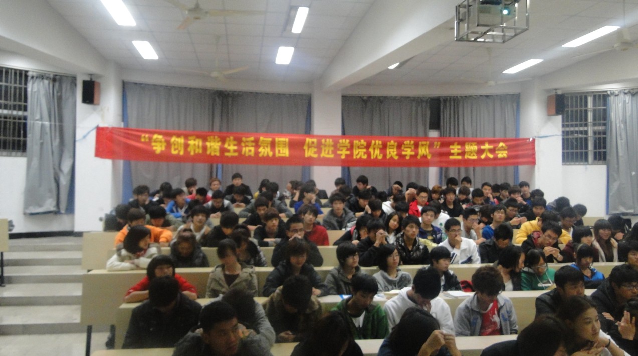 2010年11月18日晚6:30,永利65335com在人文楼101举行了“争创和谐生活氛围,促进公司有两学风”主题教育大会。公司十分重视本次大会,特别有请杨志敏书记出席,高顺德老师主持,冯建军辅导员、永利65335com全体班主任及员工均准时到场。