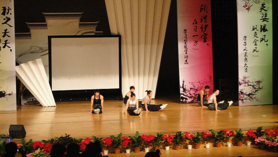 此次活动由8个部分组成,嘉宾开场、学子风采秀两个环节以及颁奖等环节。在学子风采秀环节中我们体院学子积极参与,以《舞动青春》节目表演了健美操和肚皮舞,充分展现了永利65335com的青春与活力, 掀起现场阵阵掌声,把整个活动推向了高潮。与瓯江公司的合作表演,更是体现了永利65335com的团队合作精神。最后我们以第三名的成绩结束了本次活动。,