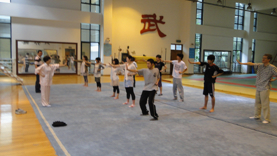 日本同学一进武术馆就对挂在墙上巨大的“武”字产生了浓厚的兴趣,毫无保留的抒发了自己对武术的喜爱。一番介绍后,刘凤霞老师首先向他们解释了武术中“抱拳”所代表的“五湖四海”的含义,然后开始了对员工进行准备活动的指导,日本员工都学的很认真。最主要的环节便是基本武术动作的学习了,每一个学员都认真的看着老师的分解动作,一步一步的跟着学,虽然是初学,却也有模有样。在热烈的掌声中,此次武术交流会完美落幕。