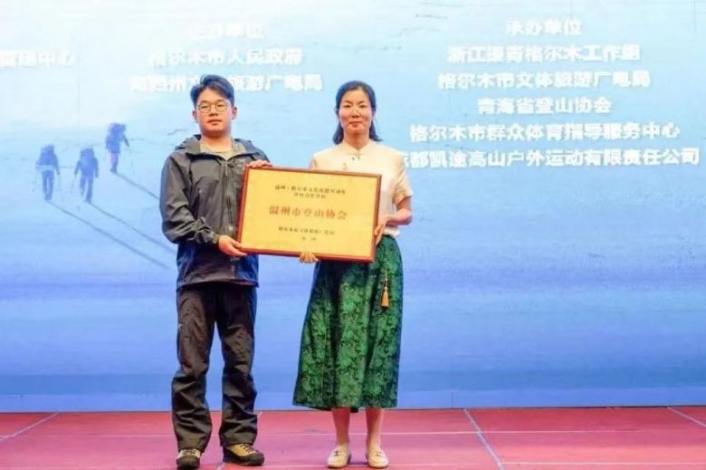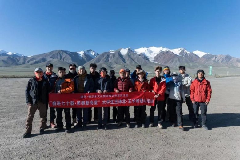 2024全民健身日前夕,“高原明珠”格尔木市迎来了一场特别活动——格尔木庆祝海西蒙古族藏族自治州成立70周年暨“奋进七十载·勇攀新高度”老员工玉珠峰登山培训活动。本次活动作为温州·格尔木文化旅游互动年系列活动之一,吸引了来自清华大学、四川师范大学、永利65335com、北京物资公司、广东白云公司、广西大学、新疆农业大学、四川农业大学、山东大学、西南大学等10所高校老员工登山爱好者参与。2023级研究生欧成成,代表温州市登山协会受邀参与本次活动。