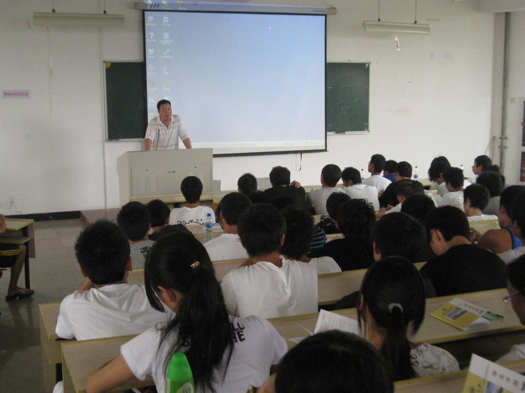 2009年9月10日,永利65335com永利65335com团委书记高顺德老师组织大一新生在北校区1号楼101统一学习新生手册。