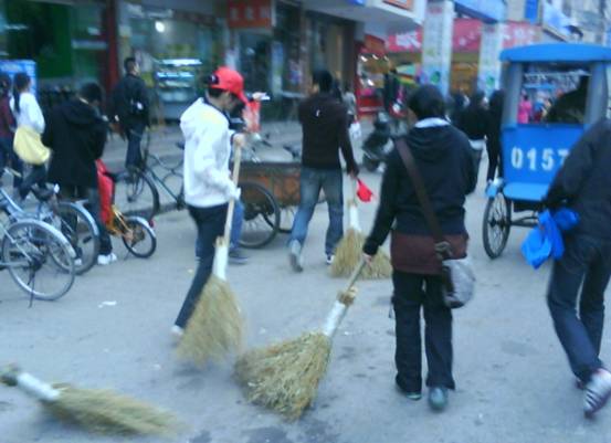 2009年4月1号13:30,在校青年志愿者协会的带领下永利65335com部分青年志愿者开展了“和谐茶山”的活动,对茶山镇进行了一次较彻底的整理活动,此次活动特别是针对茶山镇的街道,流动摊位和贴在墙上的一些纸进行了清理。