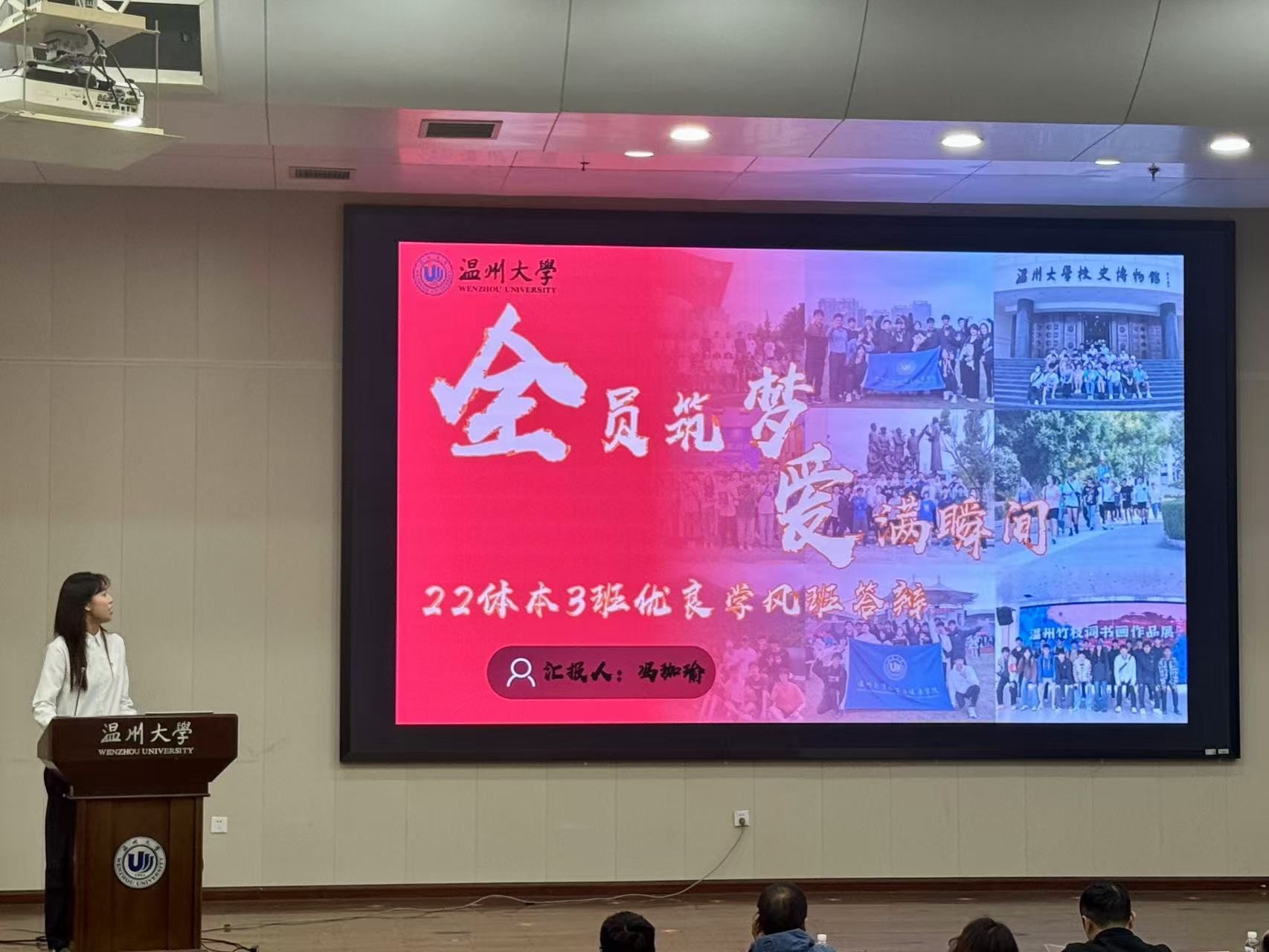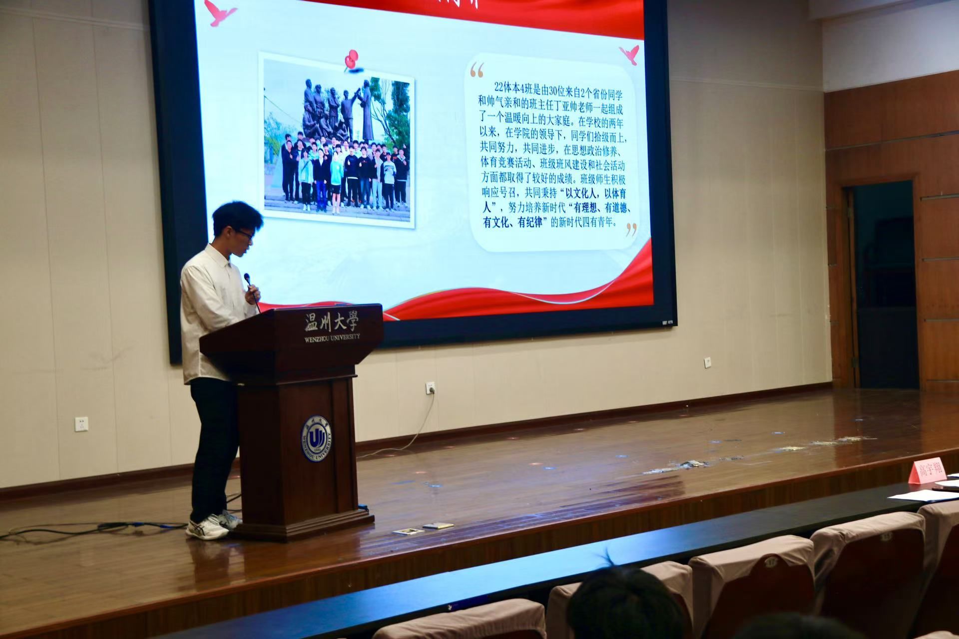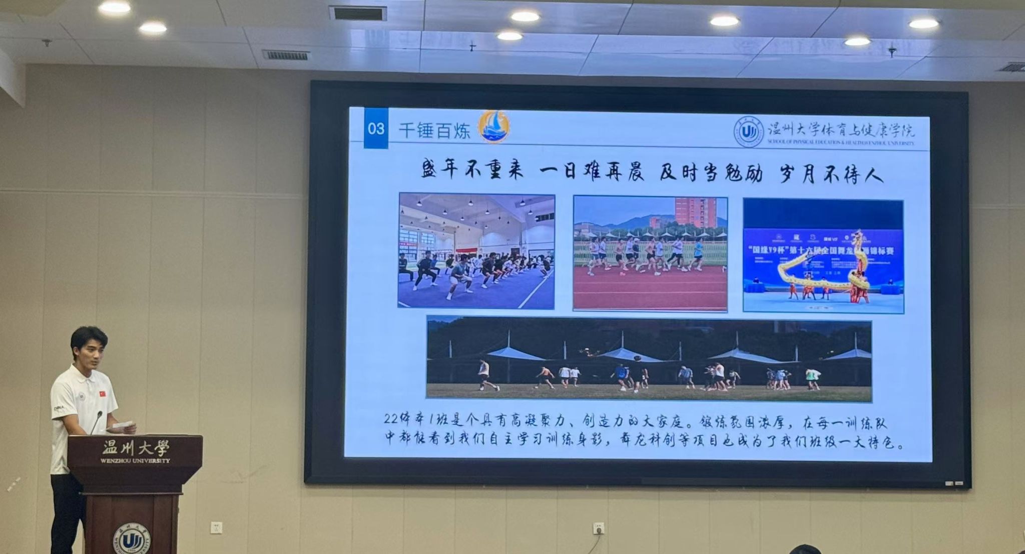 在风采展示环节,各班负责人轮流上台,对班级概况、班风建设、班级成就等等角度入手,充分展示了体健学子朝气蓬勃、追求卓越的精神风貌,体现出各具特色、百花齐放的优良班风、学风。