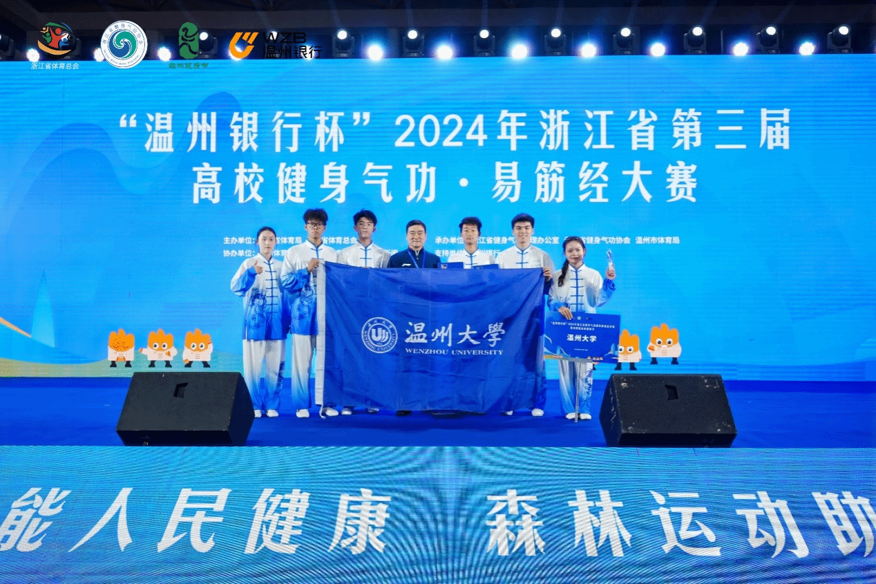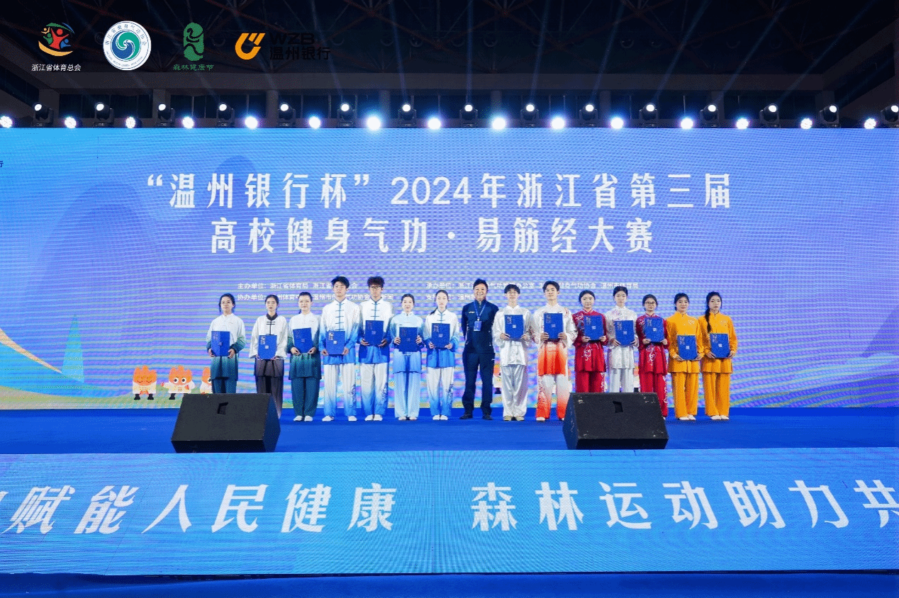 11月24日,“温州银行杯”2024年浙江省第三届高校健身气功·易筋经大赛在温州市体育中心举行。公司武术队斩获团体二等奖。其中,永利65335com队员项益鹏 、杨佳臻、叶瑞泽获个人二等奖、杨佳臻获“优秀运动员”称号,周义义老师获“优秀教练员”称号。