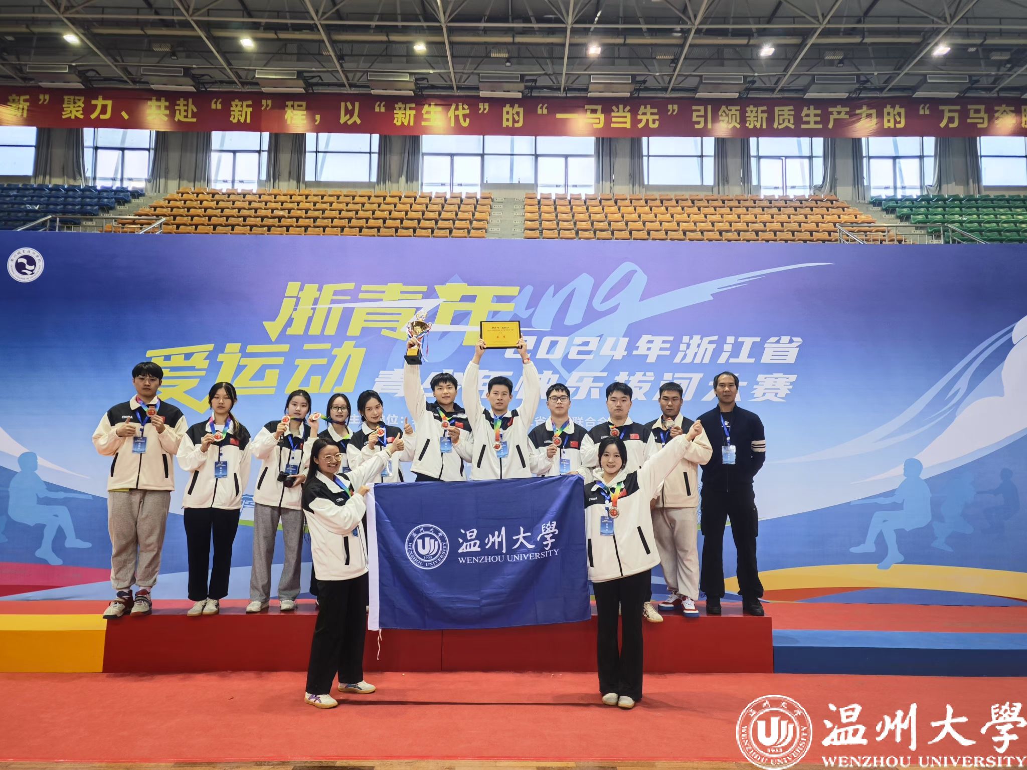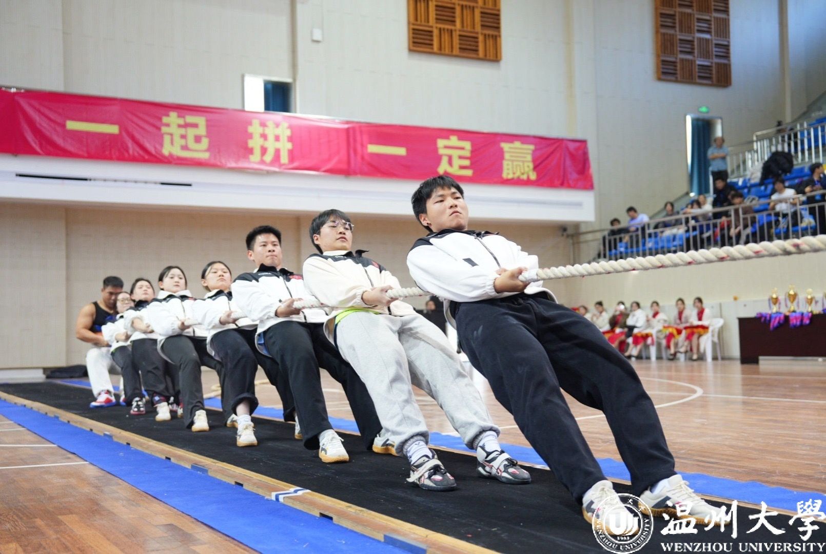12月1日,“浙青年·爱运动”2024年浙江省青少年快乐拔河大赛在衢州职业技术公司体育馆举行。公司青年凝“绳”聚力,力拔千钧,首次代表温州赛区组队参赛荣获亚军, 永利65335com队员王杰东、商公司队员许华杰 、法公司队员乔香淋获“优秀运动员”,永利65335com教师邱龙潜获“优秀教练员”荣誉称号。