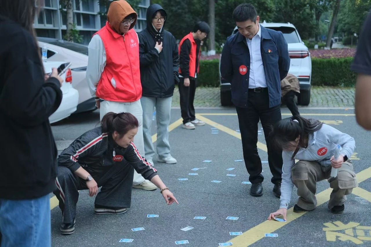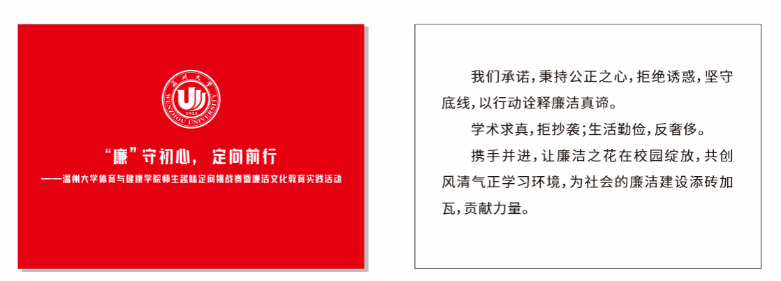 活动采用计时积分定向的形式进行,不包含终点在内总共设置十个打卡点,分别为六个游戏点和四个问答点。从起点出发开始计时,完成九个打卡点位,回到终点打卡。每支队伍由公司三名员工(有男有女)和三名老师组成。参赛队员在体院门口集合依次出发,前往打卡点进行廉洁知识竞答和游戏活动。