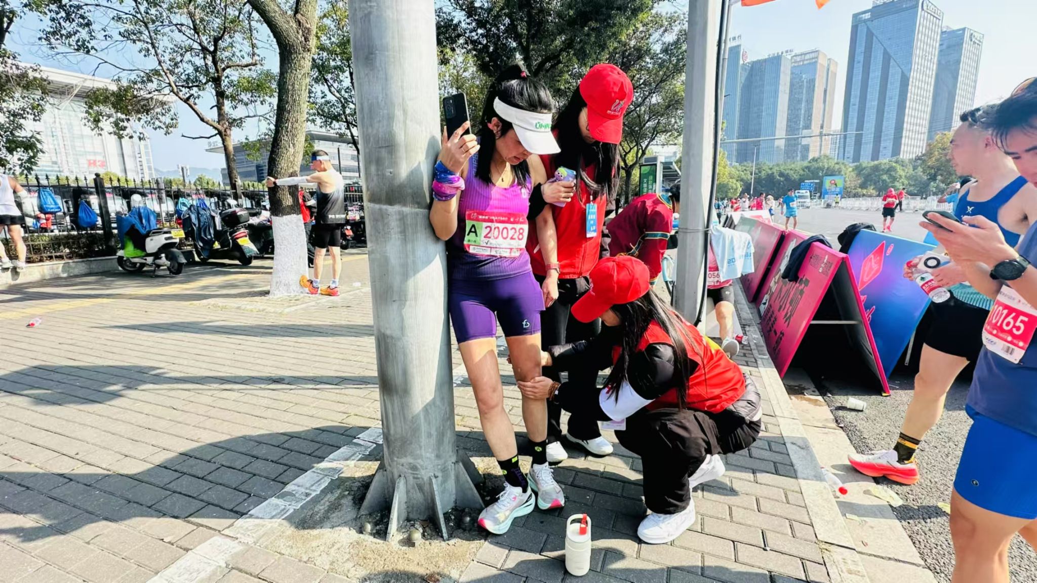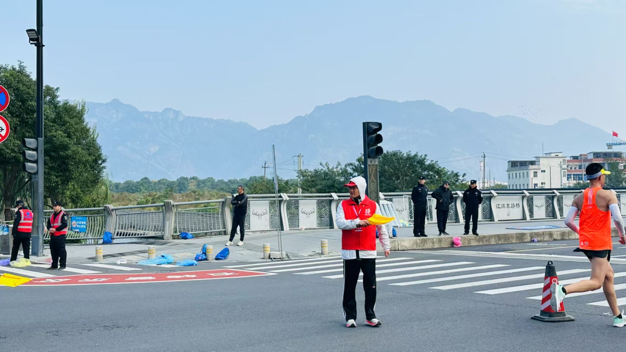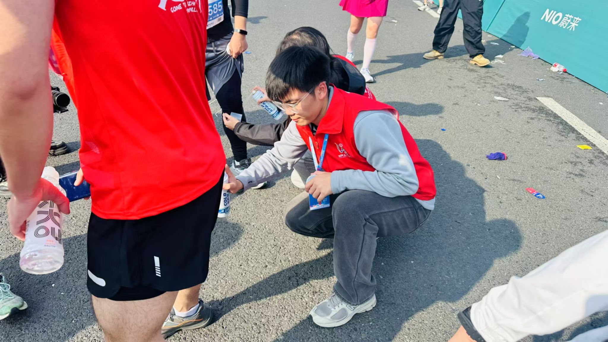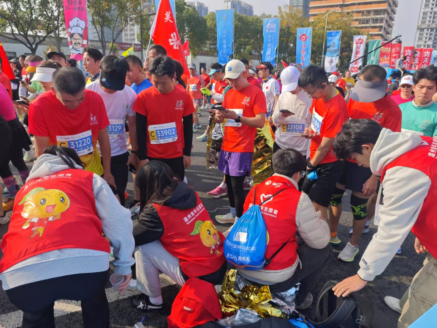 上午8点,随着发令枪响,赛事正式拉开帷幕。公司的162名裁判员和志愿者投入紧张的赛事服务中,从赛道引导到补给分发,从医疗救助到终点迎接,公司志愿者和裁判员的身影随处可见。赛道引导志愿者从起点到26.2公里折返点,为选手明确路线,也为他们加油打气;赛道收容志愿者时刻密切关注跑者动态,以便及时提供援助;医疗志愿者牢牢驻守在赛道沿线和补给点,随时处于待命状态,保障每一位选手的安全;各环节裁判员坚守岗位,为每一位选手保驾护航。
