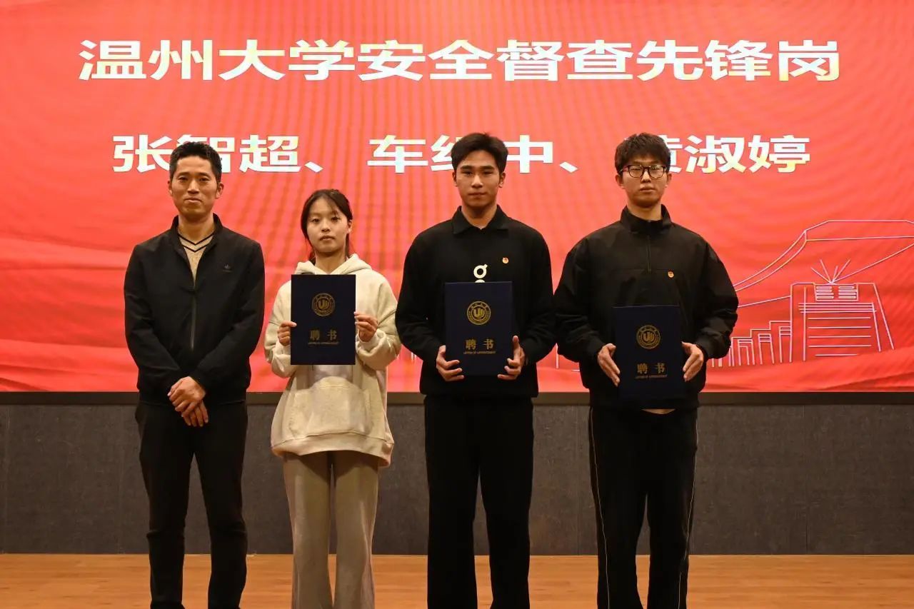 陆冰瑶解读了公司“安全建设年”十大行动,钱合激、李丽分别为校院两级安全先锋示范岗代表办法聘书。