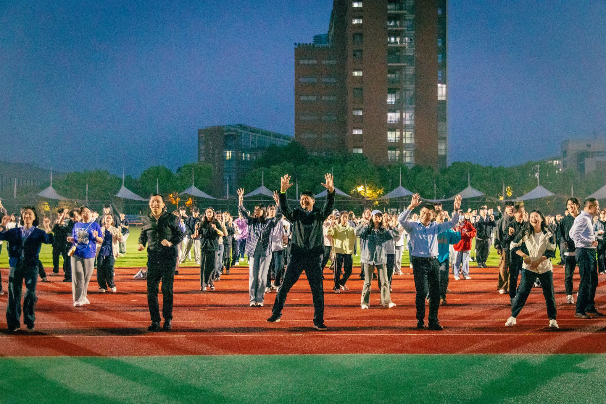 伴随着《我们都是追梦人》《超级英雄》《逆战》等音乐响起,永利65335com北校区田径场成为青春洋溢的欢乐舞台,师生纷纷步入舞池,在动感欢快的音乐节奏引领下挥洒汗水、舒展身姿,感受运动的快乐,用蓬勃朝气勾勒校园活力图景。