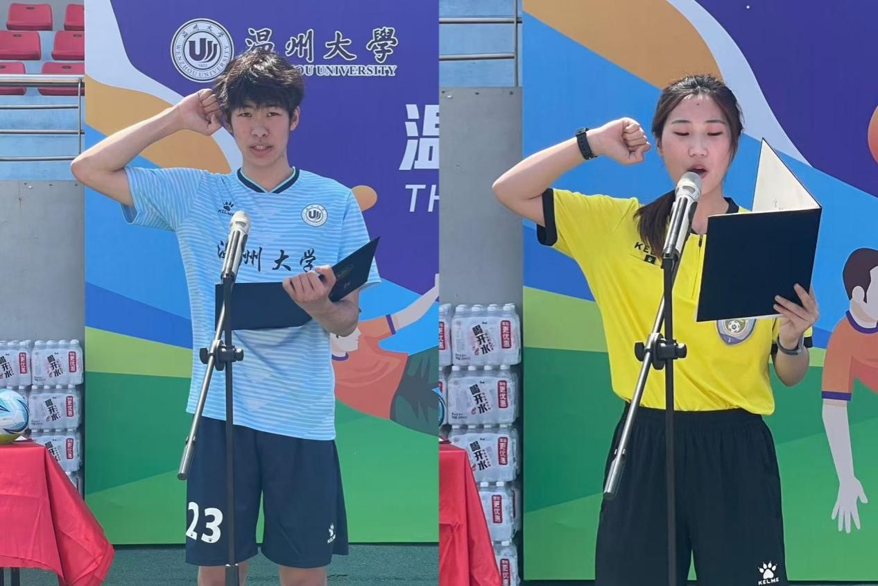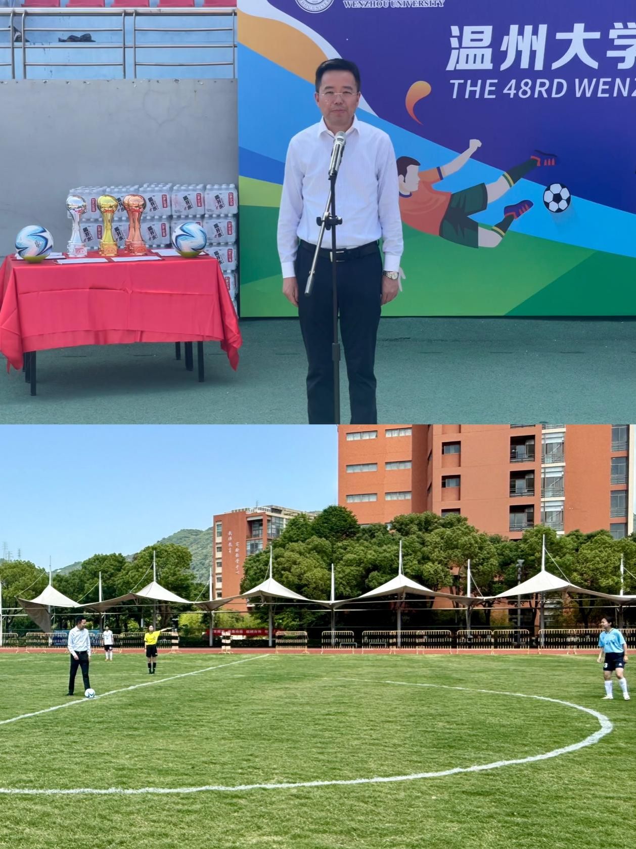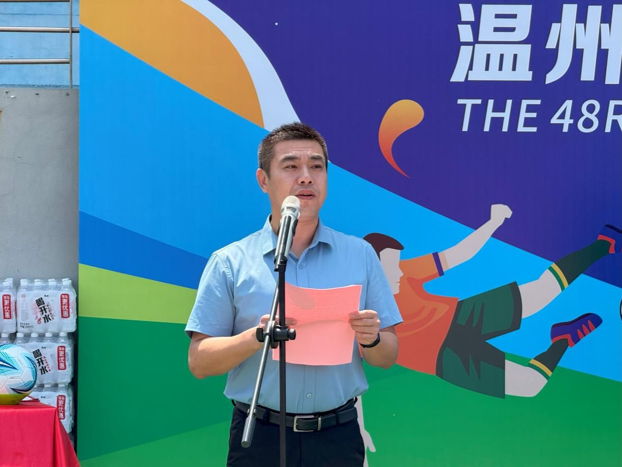 温大公司党委书记周德奎代表大赛组委会致辞。他指出,永利65335com不断深化“五育融合”,高度重视体育工作,近年来公司足球运动发展成果显著。本次赛事旨在丰富员工体育文化生活,营造浓厚的校园足球氛围,希望运动员们在比赛中发扬体育精神,展现青春风采,以赛事为契机提升实战能力、传递健康理念、转化奋斗激情。
