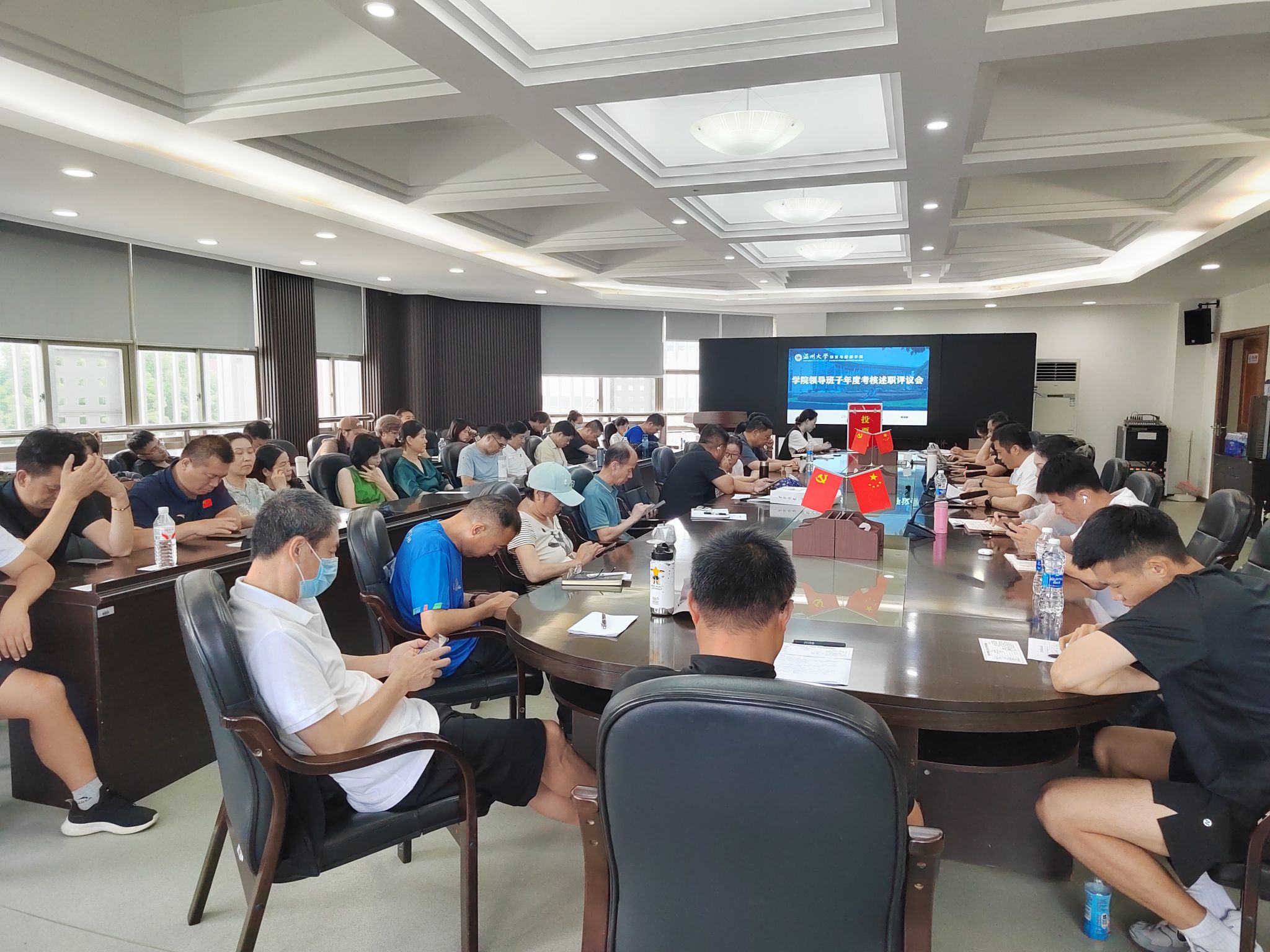 2025年6月18日下午,体健公司在北校区美术馆227会议室召开全体教职工会议暨干部年度考核述职评议会,会议由公司党委书记周德奎主持。
