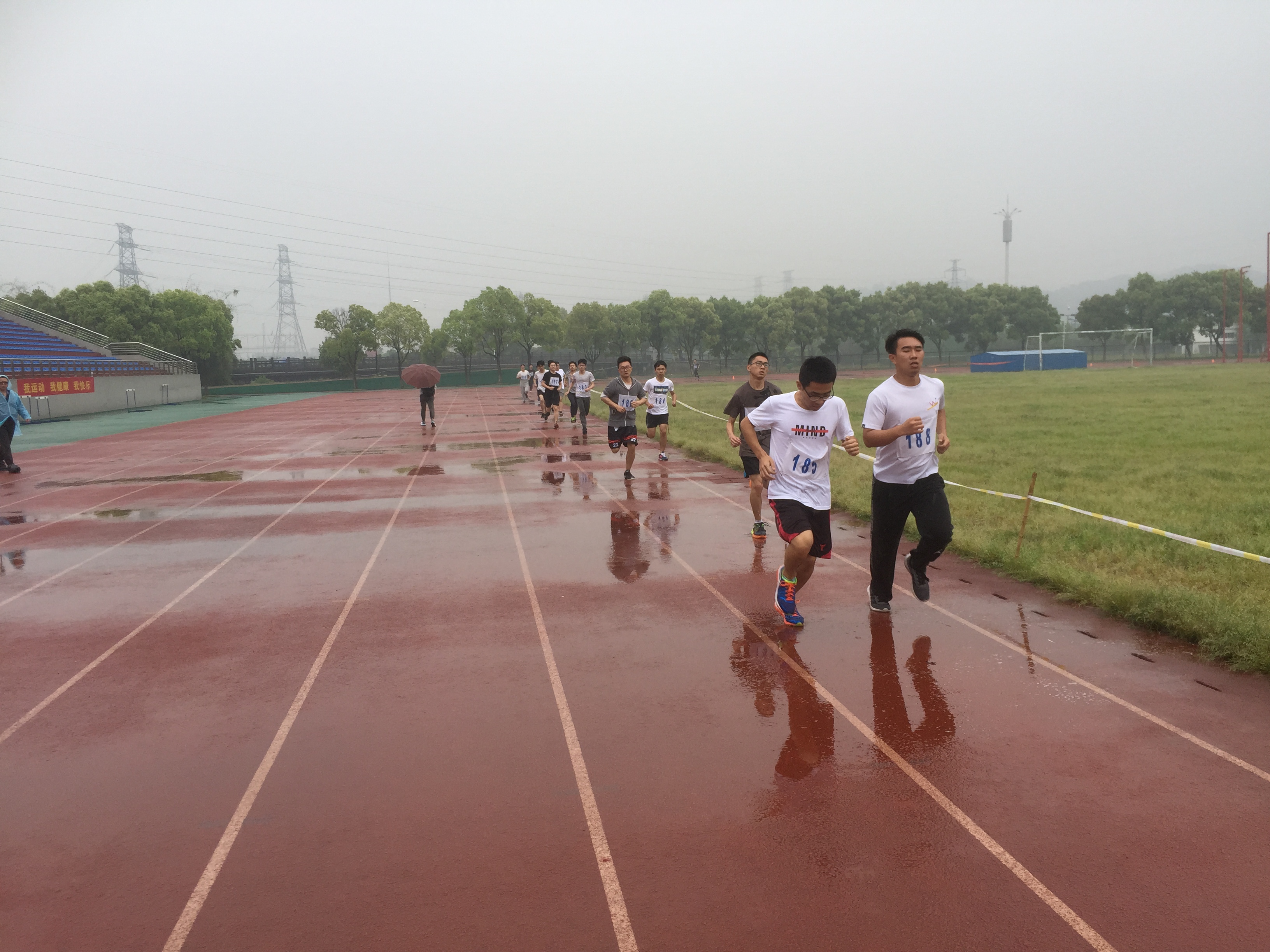 鼓劲加油,尤其是下午在下雨、场地湿滑状况下,同学们没有任何怨言,