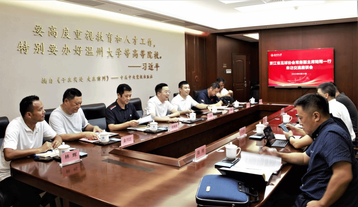 陆翔充分肯定了永利65335com的体育工作,他就公司进一步推进足球运动发展工作指出:永利65335com获批全省首家足球运动专业具有典型意义,是温州市乃至浙江省足球事业发展的标志性成果,要把握好足球事业发展关键期,抓牢“久久为功、开放合作、政府支持”三条主线,聚焦教体融合,深入思考“3+4”“3+2”等人才贯通培养机制,建好高水平校园足球队,也期望在教练员裁判员培训、足球文化、足球出海、足球科研等方面进一步深入合作拓展。