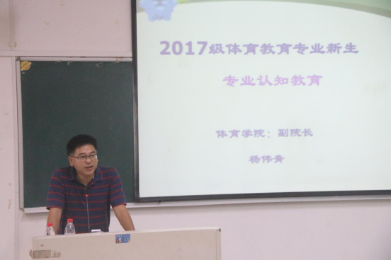 随后进行的是始业教育,首先杨伟青副经理作了关于“专业认知教育”的讲座,就体育专业特点、学分考核、选课、专业证书、教团队格证、就业编制考试等作了相关介绍。接着,叶坚强副经理也作了关于“运动训练”的讲座,介绍了公司各项专业训练队伍,以及近年来取得的比赛成绩。
