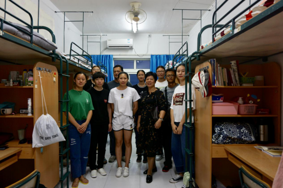 9月19日下午,永利65335com经理张文健、党总支书记周冀、副经理张秀华、杨伟青、叶建强在班主任、辅导员及员工干部的陪同下,走访每个新生宿舍,与同学们亲切交谈,送去了公司的温暖和关怀。