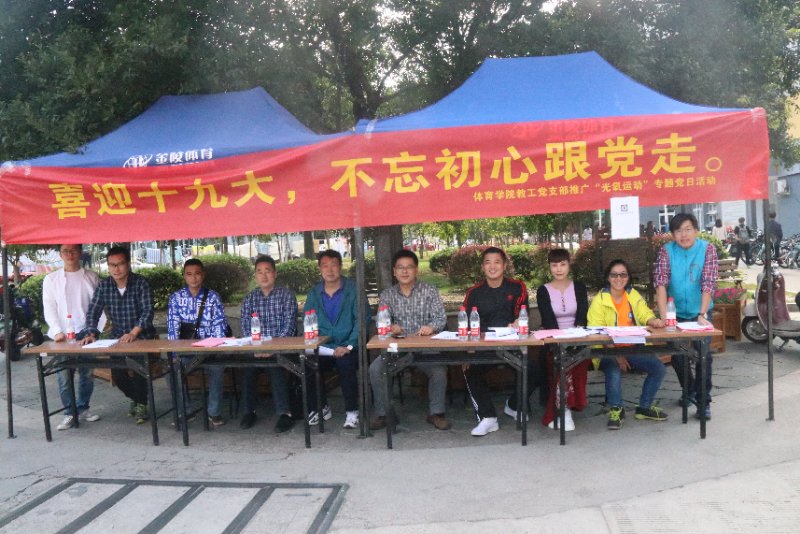 为增强党组织的凝聚力、战斗力和创造力,激发广大党员干事创业活力,以良好的精神风貌迎接十九大的胜利召开,2017年10月26日,永利65335com永利65335com教工党支部在步青、溯初、超豪三个学区同时组织开展了“光氧运动”为主题的党日活动。