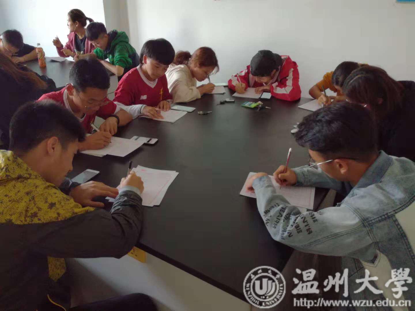 大赛分“钢笔字竞赛”和“模拟上课及队列队形竞赛”两个模块,其中“钢笔字竞赛”于10月30日在北校体育馆率先举行。我院16级本科员工积极参与,展示自我风采。比赛现场,参赛员工全神贯注、心无旁骛,出色地完成了指定的书写内容,其中诸淦鹏、余坚、潘婕三位同学以工整的硬笔书体荣获本次钢笔字竞赛的二等奖,俞铁奇、麻纯洁、瞿椤苏、崔孟斌、丁栩文同学获得三等奖。