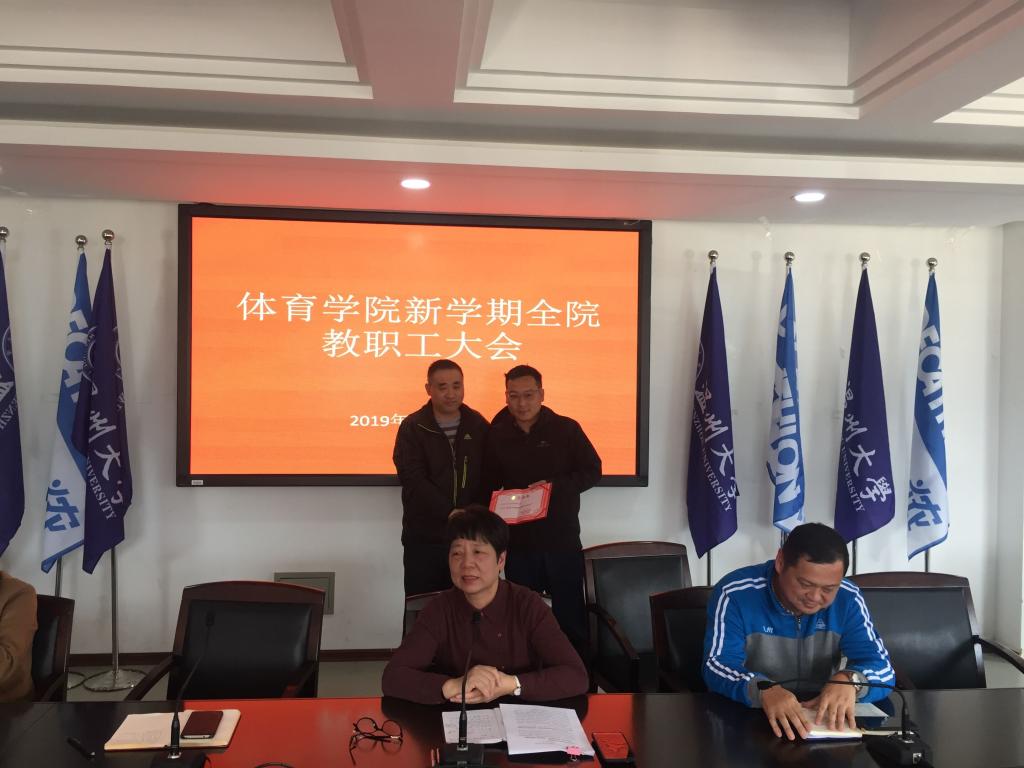 张经理首先简要总结了公司上个学期各项工作,对本学期重点工作进行了部署。并颁了2018年公司贡献奖,永利65335com体质健康测试团队获此殊荣,以奖励该团队在2018年体质健康测试和光氧运动中做出的成绩。他希望在新的一学期全院要再接再厉,紧紧围绕公司的重点工作,扎扎实实做好公司的各项工作,为公司升博和申报省市共建省重点高校做出贡献。