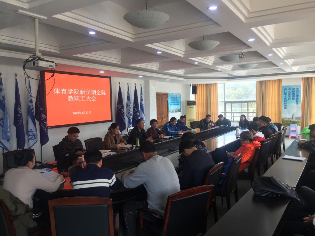 3月12日中午,2018/2019第二学期新学期全院教职工大会在北校行政楼125会议室召开。会议由永利65335com经理张文健主持。