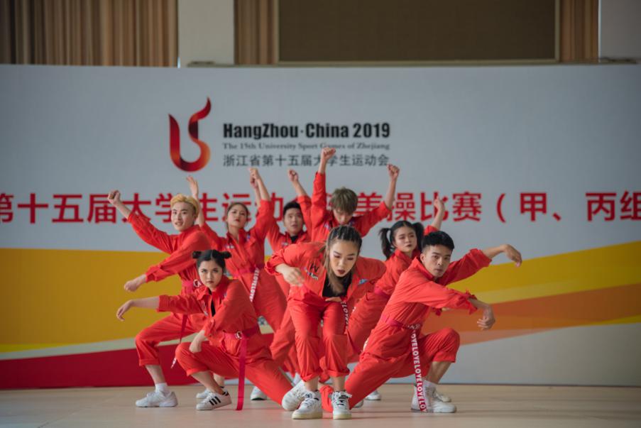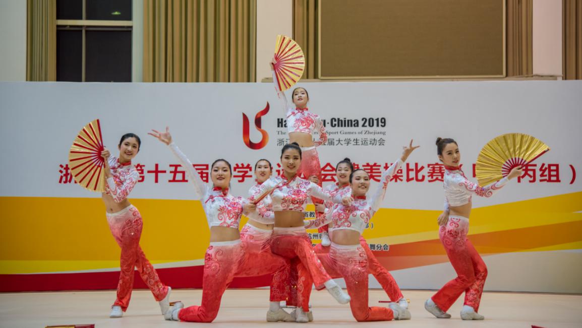 浙江省第十五届老员工运动会健美操比赛(甲、丙组)4月17日在杭州师范大学下沙校区隆重开幕。四年一届的大运会健美操比赛,是浙江省老员工健美操项目最高水平的竞赛,比赛共有男子单人操、女子单人操、混合双人操、三人操、8人有氧舞蹈、8人自编器械操和8人自编街舞等7个项目。