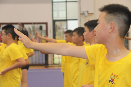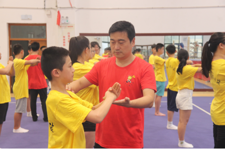 在周老师详细讲解和耐心指导下,营员们练习的有模有样。之后,营员们又进行了武术基本步型、武术基本功、武术段位长拳单练的学习。