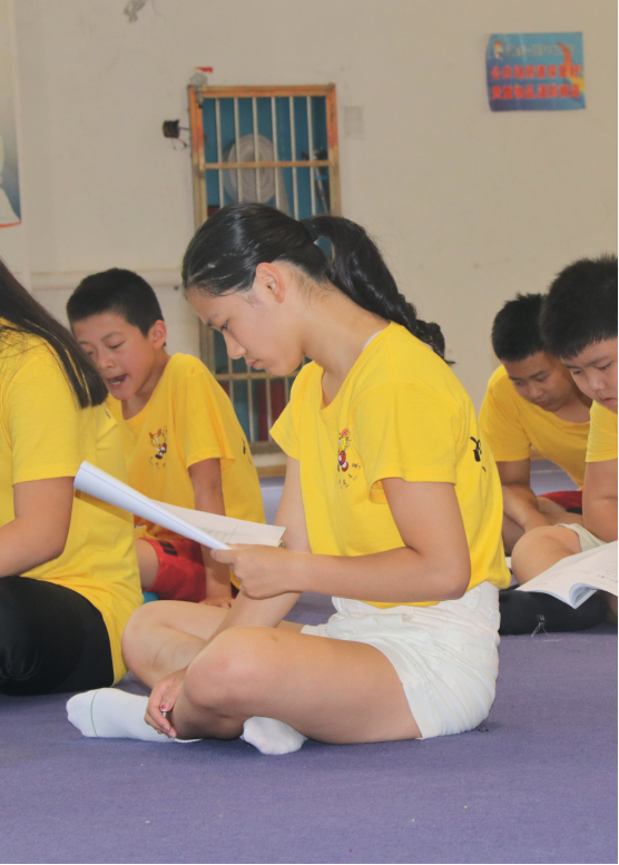 7月26日上午,武术营的营员们又一次相聚在北校武术馆,在志愿者老师的带领下朗诵《小池》、《赠汪伦》等诗篇。