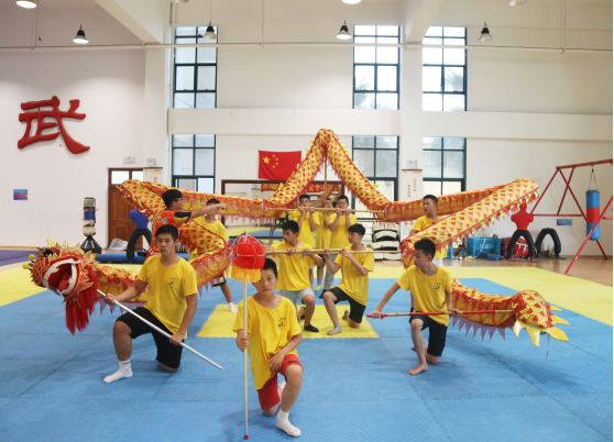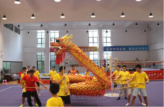 下午,武术营的营员们在北校武术馆进行舞龙训练。有了昨天的基础,同学们上手后并没有显得生疏,今天主要是巩固和加强昨天学习过的动作。