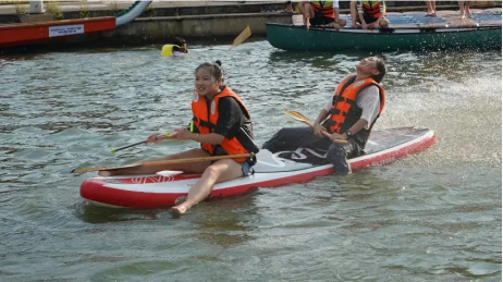 泼水、打水仗、赛龙舟,初次的体验可以说让人玩到精疲力尽,然而大家却没有因为运动感到疲惫,反而依旧对水上运动生出了更多向往。