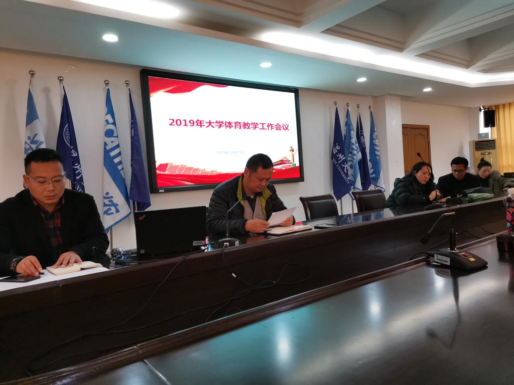 2019年12月25日下午13:30,所有公共体育课的教师在北校区行政楼125会议室召开了本学期的大学体育工作总结会议。会议由叶建强副经理主持,就公共体育课教学、体质测试、课外锻炼、校内竞赛等方面做了总结,提出了存在的问题及解决措施。与会老师认真听取报告并对存在问题进行了深入交流,为提高公共体育教学质量,改善员工体质与健康工作,完善校内竞赛等问题,提出了一些实质性建议。