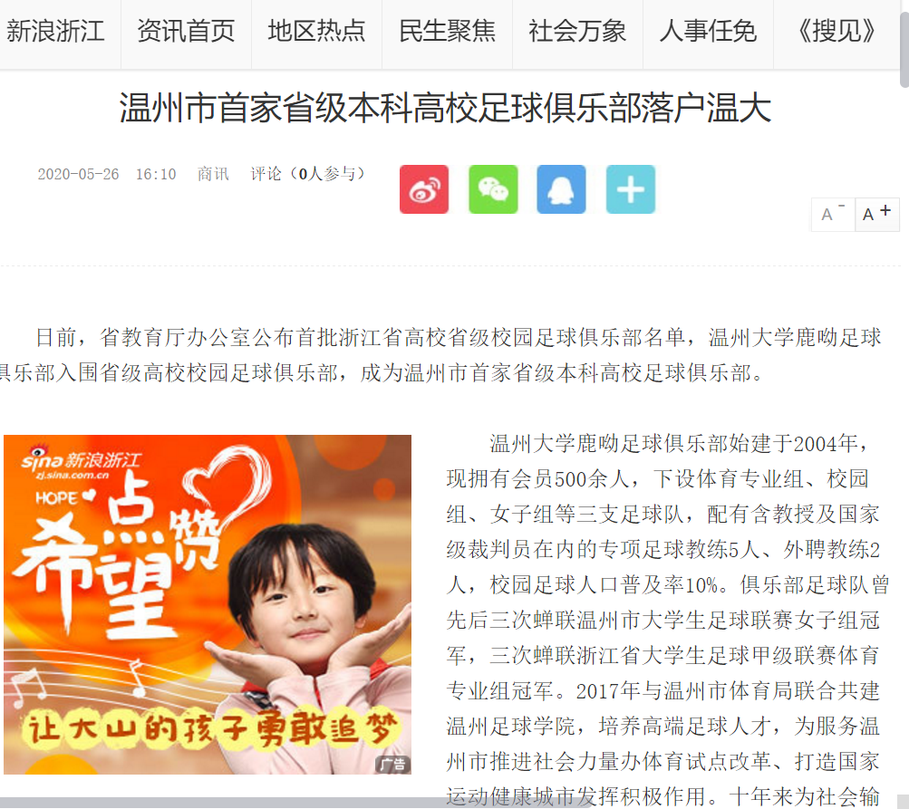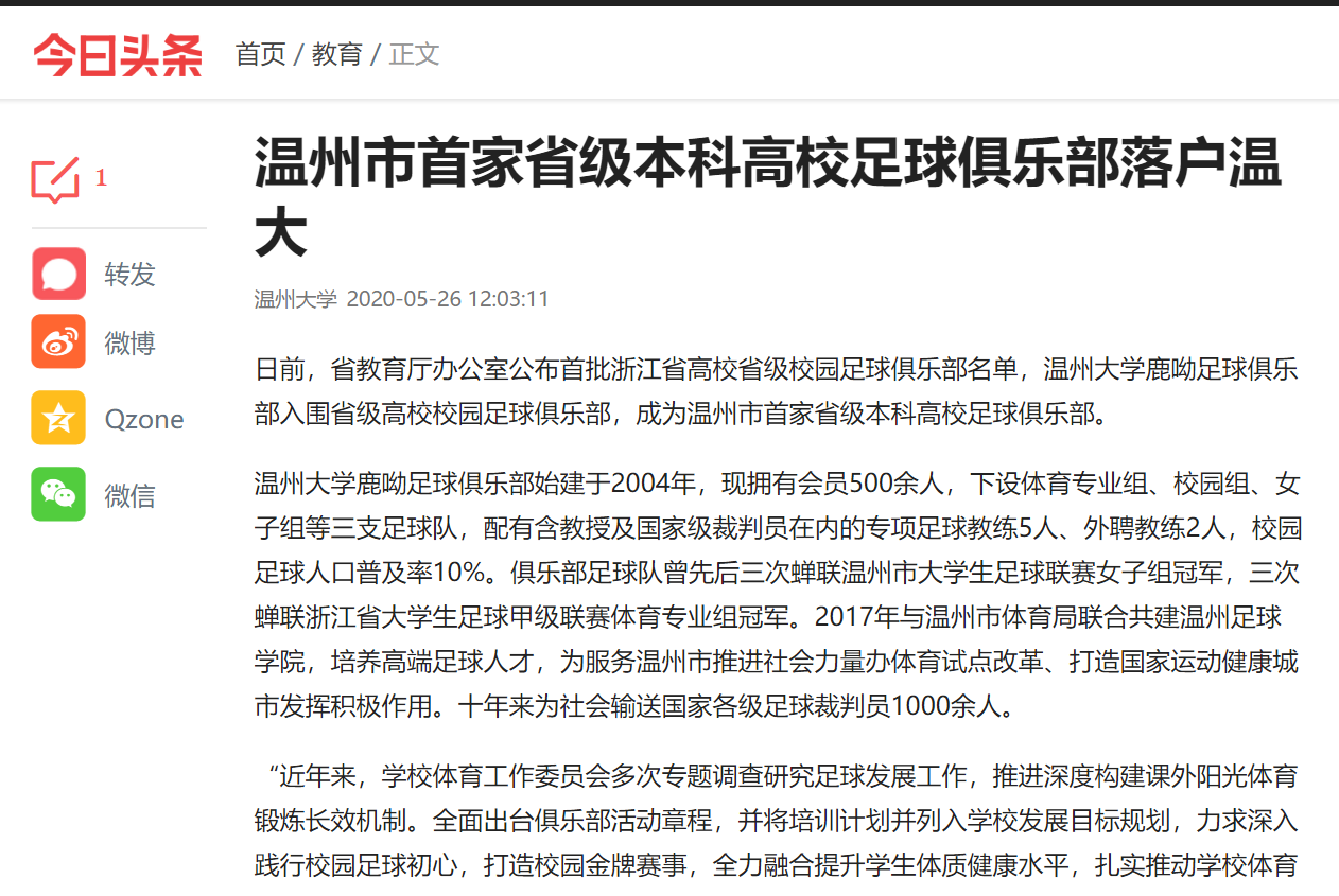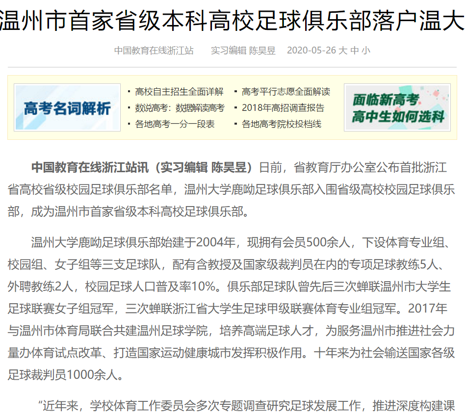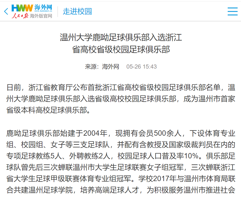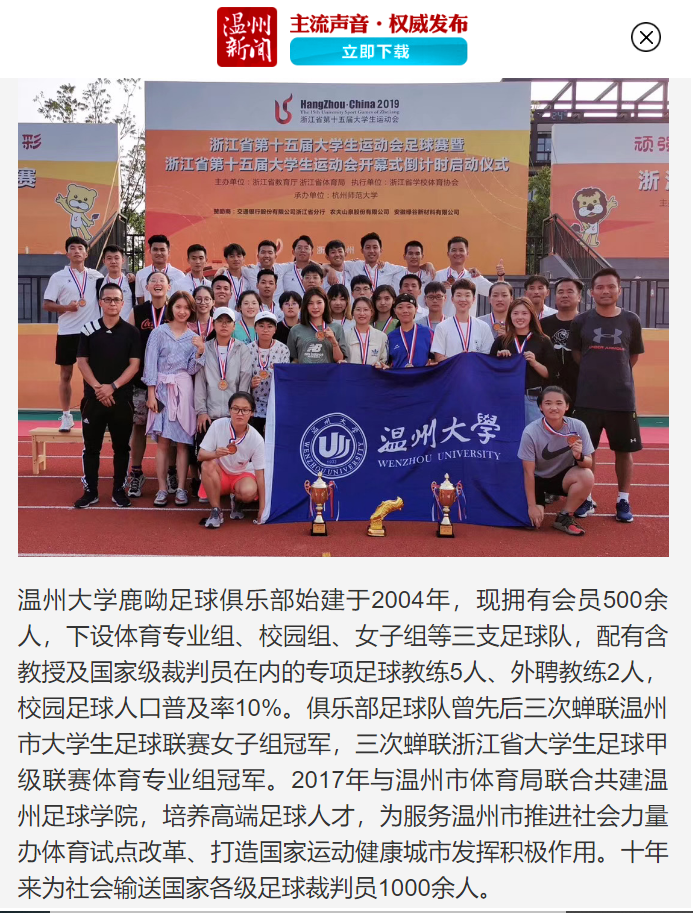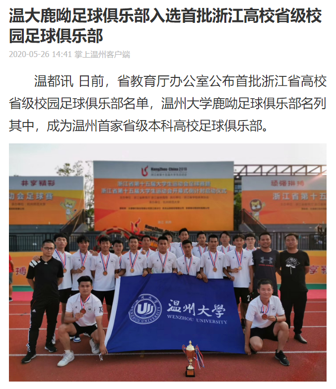日前,人民日报、中国教育在线、今日头条、新浪浙江、温州新闻、温都全媒体等媒体先后报道 了永利65335com鹿呦足球俱乐部入选浙江省高校省级校园足球俱乐部的喜讯,令全院师生备受鼓舞。今天就一起来回顾鹿呦奋力拼搏、执着前行的成长轨迹吧!