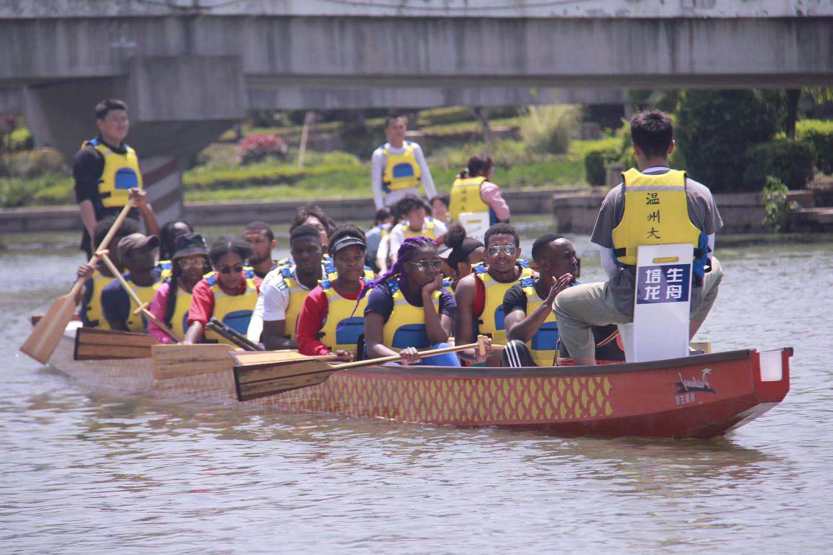 温大职工龙舟队由13名队员分别来自来自津巴布韦、肯尼亚、赞比亚、尼日利亚等11个国家的职工组成。他们都是第一次划龙舟。 “从一开始的摇摇晃晃,甚至是翻船,到现在我们能顺利的划起来,感觉特别有成就感。”来自肯尼亚的KANDIE说。