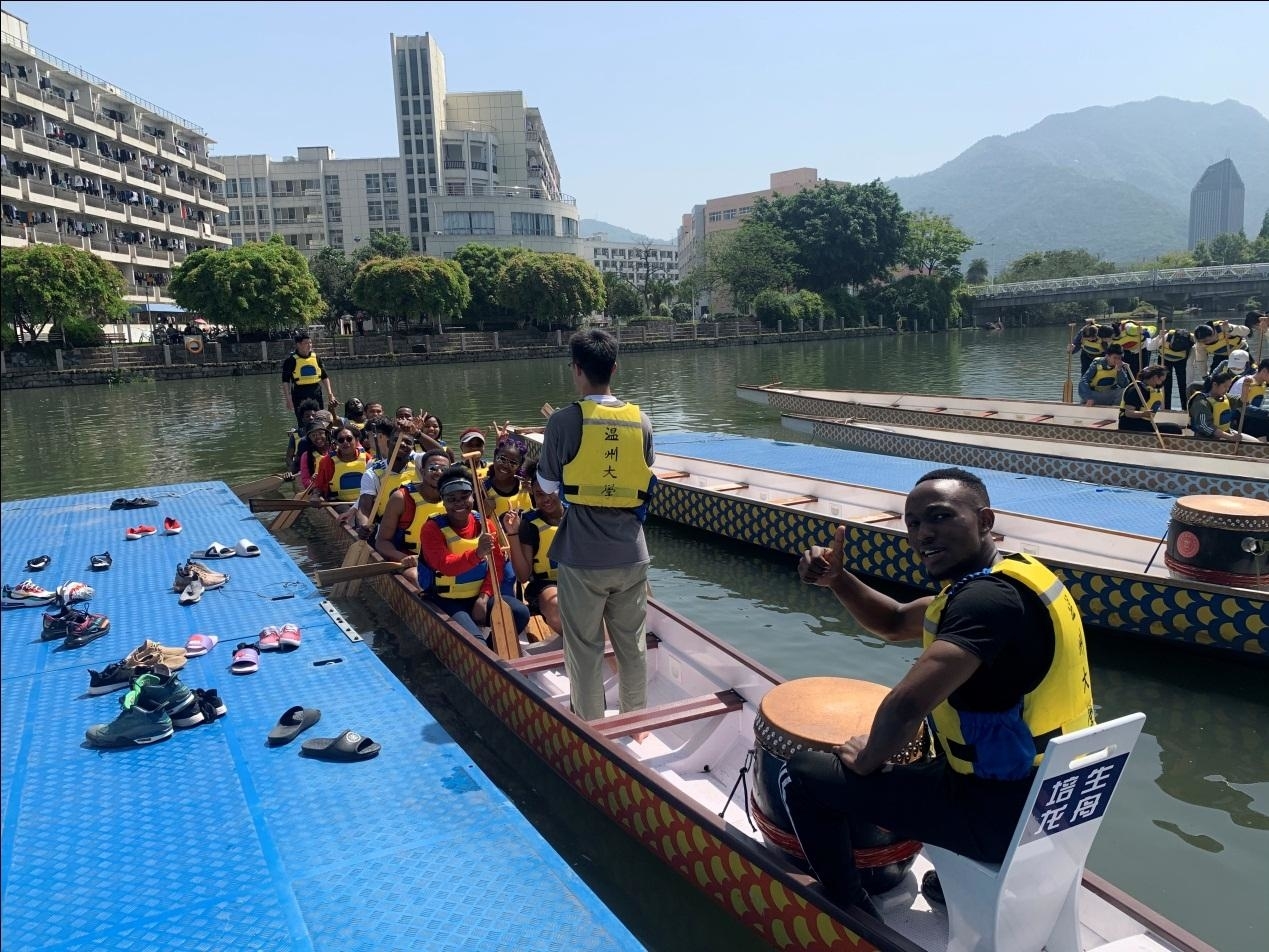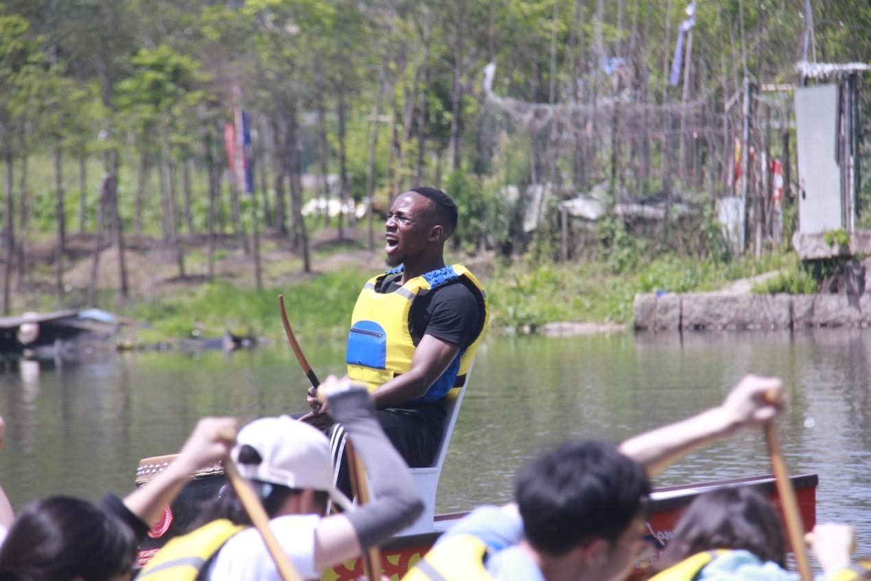“从一开始的摇摇晃晃,甚至是翻船,到现在我们能顺利地划起来,感觉特别有成就感。”来自肯尼亚的KANDIE同学说起自己赛龙舟的训练过程,很是兴奋。