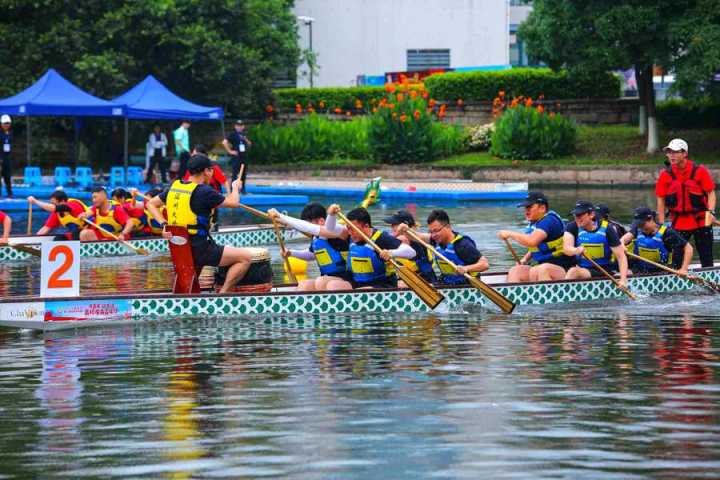 首先进行的是100米直道赛。发令号响,鼓声骤然密集起来,划手们节奏统一,船速不断加快,大家使出浑身力气,奋勇争先,龙舟在舵手的掌控下向终点迸发。经过激烈角逐,最终,在员工组中,温大一队、温大二队、温科职院一队获得一等奖;在教工组中,温州医科大学、温大数理公司获得一等奖,其余队伍分别获得二、三等奖。