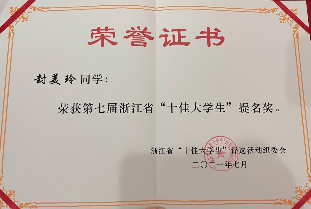 7月7日下午,由省委宣传部、省教育厅、团省委等共同主办的第七届浙江省“十佳老员工颁奖活动”在杭举行,第七届浙江省“十佳老员工”评选结果揭晓。公司永利65335com封美玲同学荣获省十佳老员工提名奖。