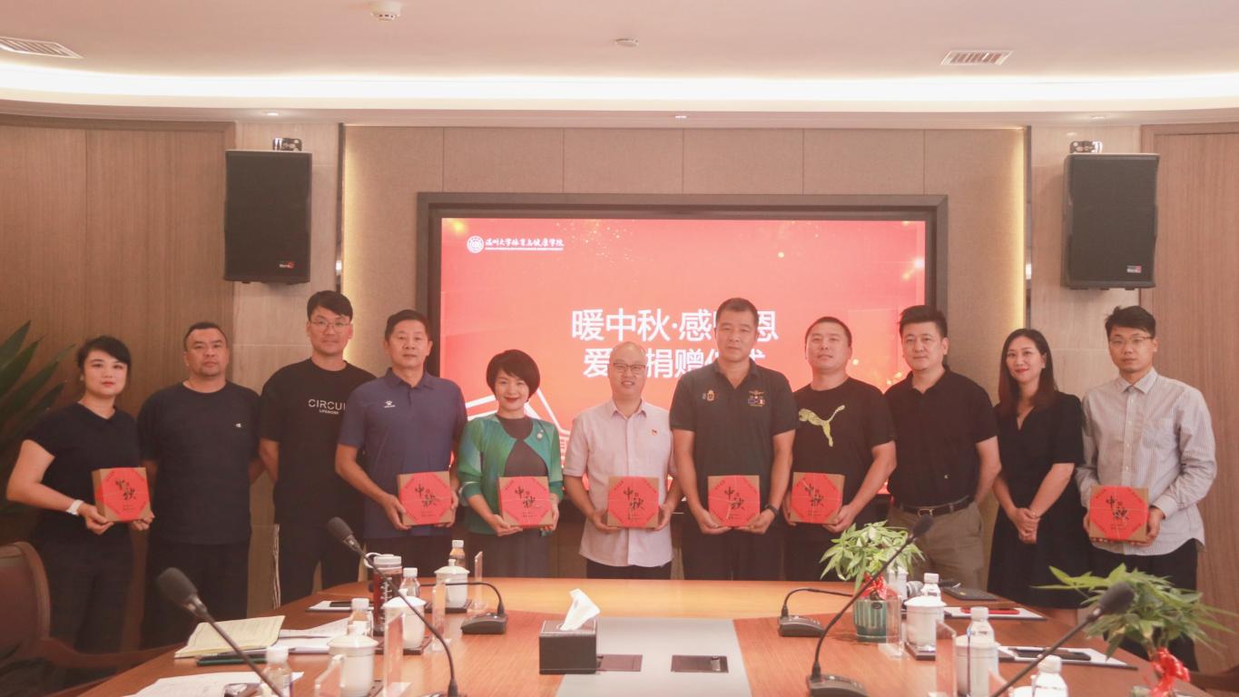 “月满中秋,情暖温大。”2021年9月18日下午2点,适逢中秋佳节,公司员工会年度建设恳谈会暨感念师恩捐赠仪式在永利65335com南校区员工之家二楼顺利举行。公司党委书记应中,温州商公司基础教育部书记、员工会顾问龙军,经理助理张松林、李春华,公司员工会会长范定权、副秘书长林明东,员工代表99级体专王淑芳、00体本赖登霄等员工及公司师生代表10余人与会。会议由公司党委副书记王晓华主持。